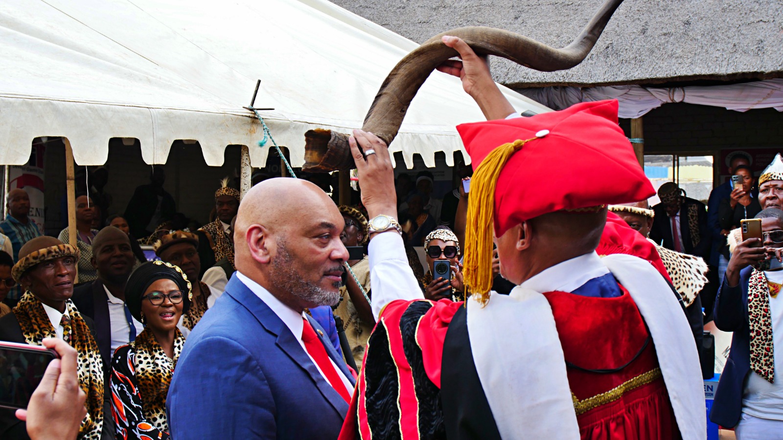 His Royal Highness King Tikoe Tefo Meshack Lekitlane presides over the coronation ceremony as Dr. Ruben M. West is crowned a King